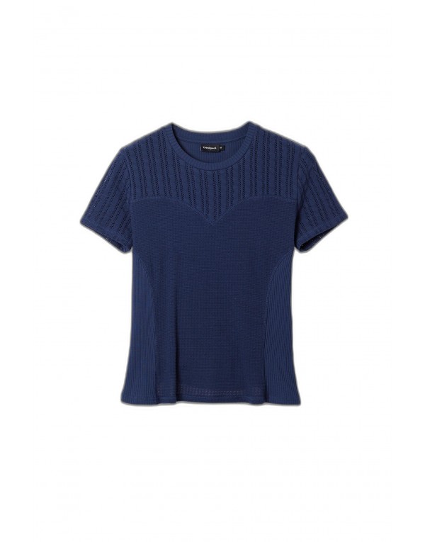 Brand: Desigual Gender: Women Type: T-shirts Season: Spring/Summer PRODUCT DETAIL • Color: blue • Sleeves: short • Neckline: round neck COMPOSITION AND MATERIAL • Composition: -97% cotton -3% elastane • Washing: machine wash at 30°