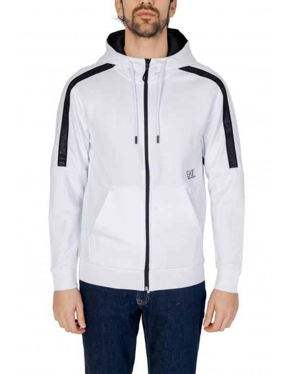 Brand: Ea7 Gender: Men Type: Sweatshirts Season: Spring/Summer PRODUCT DETAIL • Color: white • Pattern: print • Fastening: with zip • Sleeves: long • Collar: hood • Pockets: front pockets COMPOSITION AND MATERIAL • Composition: -100% cotton • Washing: machine wash at 30°