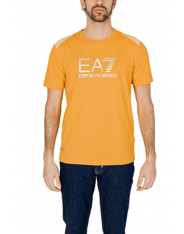 Brand: Ea7 Gender: Men Type: T-shirts Season: Spring/Summer PRODUCT DETAIL • Color: yellow • Pattern: plain • Sleeves: short • Neckline: round neck COMPOSITION AND MATERIAL • Composition: -42% cotton -5% elastane -53% polyester • Washing: machine wash at 30°