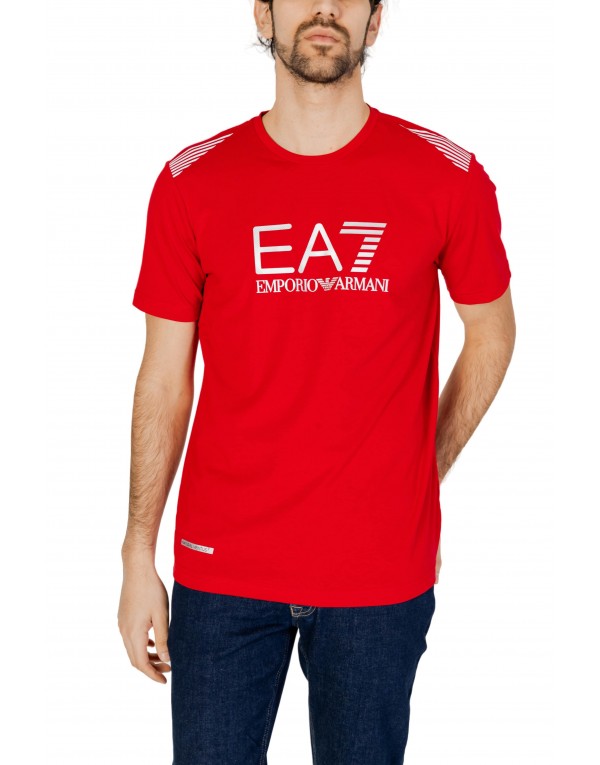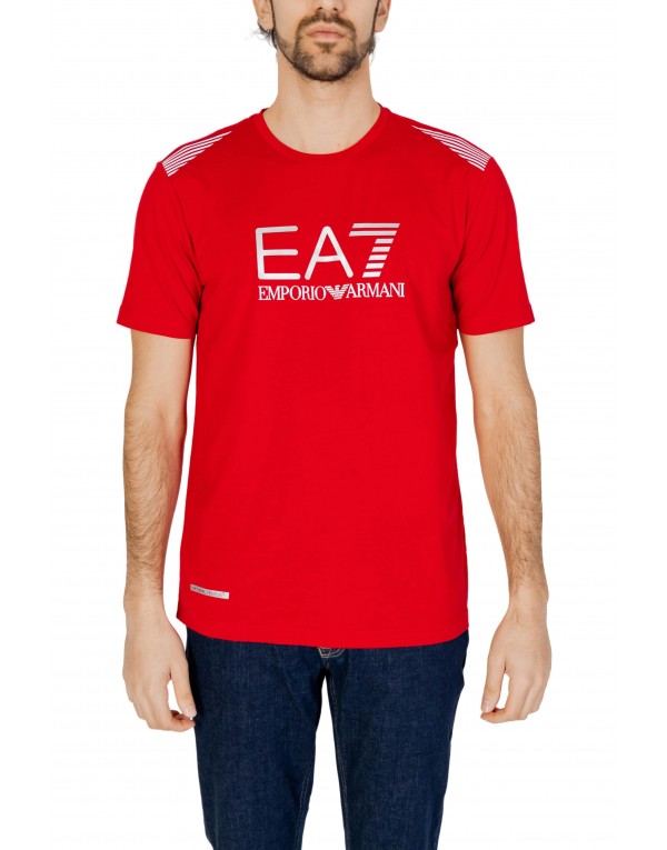 Brand: Ea7 Gender: Men Type: T-shirts Season: Spring/Summer PRODUCT DETAIL • Color: red • Pattern: print • Sleeves: short • Neckline: round neck COMPOSITION AND MATERIAL • Composition: -42% cotton -5% elastane -53% polyester • Washing: machine wash at 30°