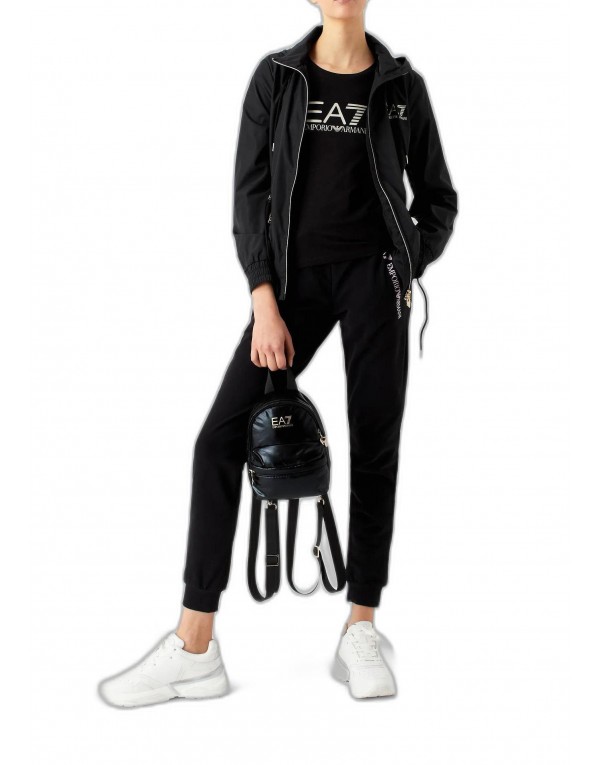 Brand: Ea7 Gender: Women Type: T-shirts Season: Spring/Summer PRODUCT DETAIL • Color: black • Pattern: print • Fastening: slip on • Sleeves: short • Neckline: round neck COMPOSITION AND MATERIAL • Composition: -95% cotton -5% elastane • Washing: machine wash at 30°