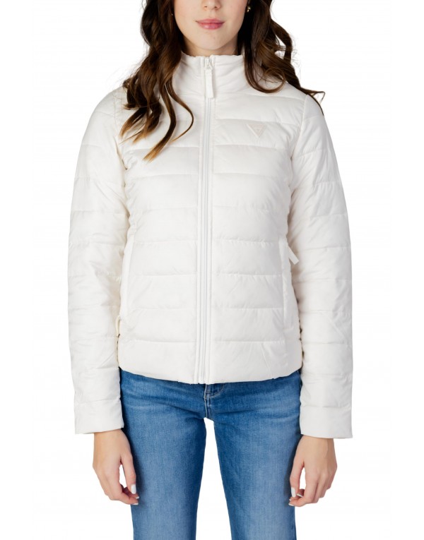 Brand: Guess Active Gender: Women Type: Jackets Season: Spring/Summer PRODUCT DETAIL • Color: white • Pattern: plain • Fastening: with zip • Sleeves: long • Neckline: turtleneck • Pockets: front pockets COMPOSITION AND MATERIAL • Composition: -7% elastane -93% polyester • Washing: machine wash at 30°