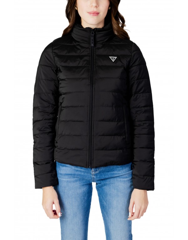 Brand: Guess Active Gender: Women Type: Jackets Season: Spring/Summer PRODUCT DETAIL • Color: black • Pattern: plain • Fastening: with zip • Sleeves: long • Neckline: turtleneck • Pockets: front pockets COMPOSITION AND MATERIAL • Composition: -7% elastane -93% polyester • Washing: machine wash at 30°