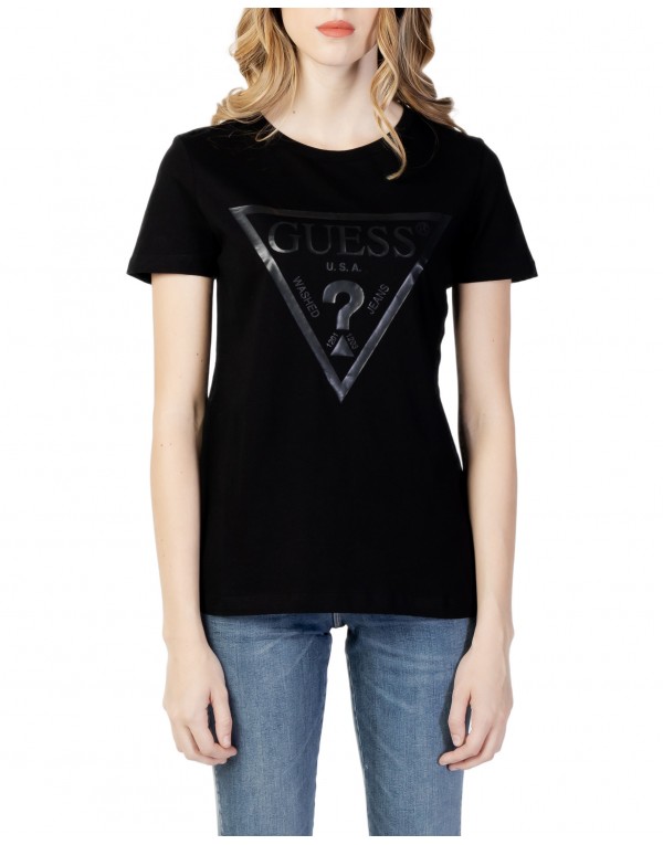 Brand: Guess Active Gender: Women Type: T-shirts Season: Fall/Winter PRODUCT DETAIL • Color: black • Pattern: print • Sleeves: short • Neckline: round neck COMPOSITION AND MATERIAL • Composition: -100% cotton • Washing: machine wash at 30°