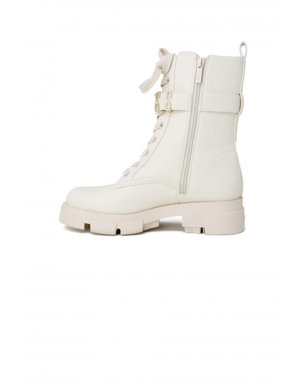 Brand: Guess Gender: Women Type: Boots Season: Fall/Winter PRODUCT DETAIL • Color: white • Fastening: laces • Sole: rubber • Lining: textile • Size (cm): 4.5 • Details: -ankle boots COMPOSITION AND MATERIAL • Composition: -20% other fibres -80% faux leather • Material: faux leather