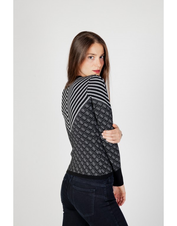 Brand: Guess Gender: Women Type: Knitwear Season: Fall/Winter PRODUCT DETAIL • Color: black • Pattern: striped • Fastening: slip on • Sleeves: long • Neckline: round neck COMPOSITION AND MATERIAL • Composition: -18% acrylic -5% wool -6% metal -16% polyamide -55% polyester • Washing: handwash