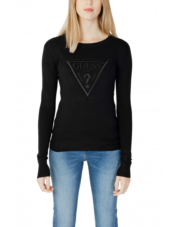Brand: Guess Gender: Women Type: Knitwear Season: Spring/Summer PRODUCT DETAIL • Color: black • Pattern: plain • Fastening: slip on • Sleeves: long • Neckline: round neck COMPOSITION AND MATERIAL • Composition: -2% lycra -16% polyester -82% viscose • Washing: machine wash at 30°
