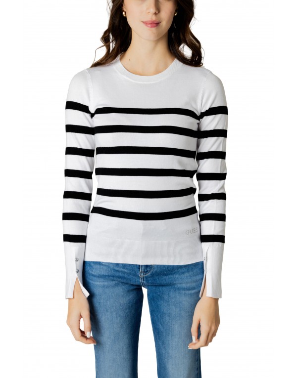 Brand: Guess Gender: Women Type: Knitwear Season: Fall/Winter PRODUCT DETAIL • Color: white • Pattern: striped • Fastening: slip on • Sleeves: long • Neckline: round neck COMPOSITION AND MATERIAL • Composition: -100% cotton • Washing: machine wash at 30°