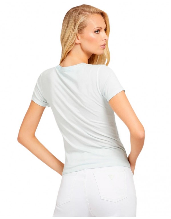 Brand: Guess Gender: Women Type: T-shirts Season: Spring/Summer PRODUCT DETAIL • Color: green • Sleeves: short • Neckline: round neck COMPOSITION AND MATERIAL • Composition: -60% cotton -40% modal • Washing: machine wash at 30°