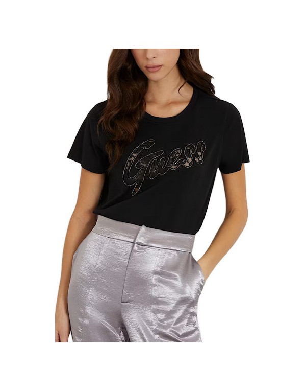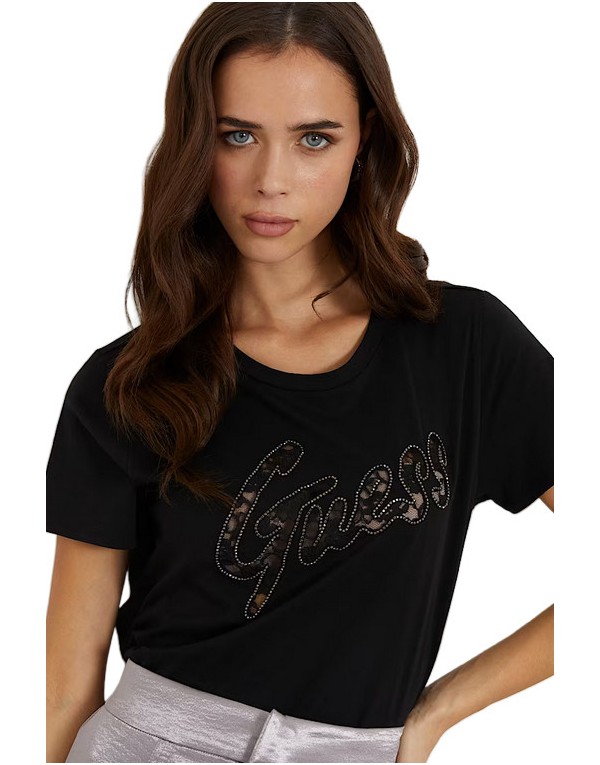 Brand: Guess Gender: Women Type: T-shirts Season: Spring/Summer PRODUCT DETAIL • Color: black • Sleeves: short • Neckline: round neck COMPOSITION AND MATERIAL • Composition: -100% cotton • Washing: machine wash at 30°