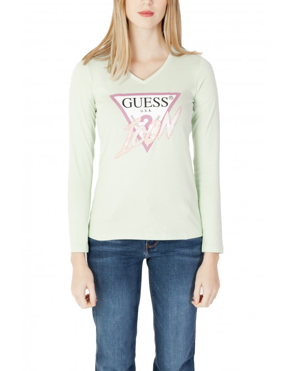 Brand: Guess Gender: Women Type: T-shirts Season: Spring/Summer PRODUCT DETAIL • Color: green • Pattern: print • Fastening: slip on • Sleeves: long • Neckline: round neck COMPOSITION AND MATERIAL • Composition: -100% cotton • Washing: machine wash at 30°
