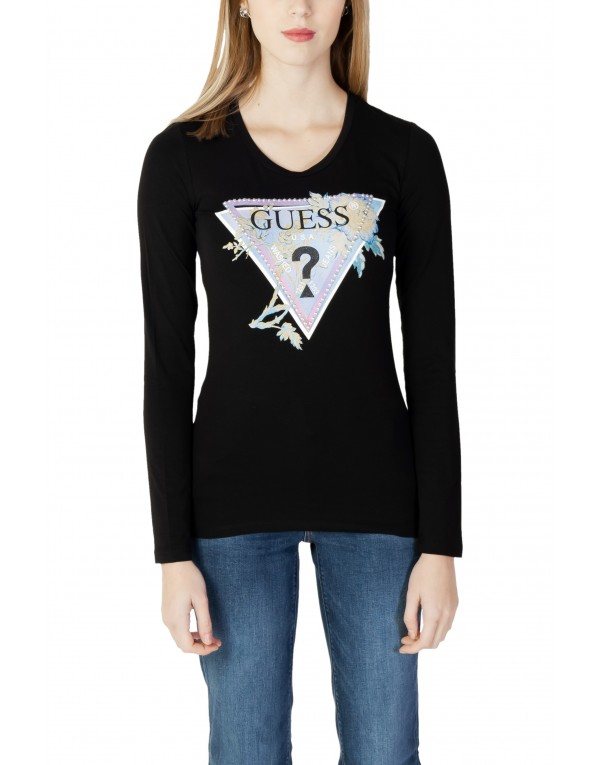 Brand: Guess Gender: Women Type: T-shirts Season: Spring/Summer PRODUCT DETAIL • Color: black • Pattern: print • Fastening: slip on • Sleeves: long • Neckline: round neck COMPOSITION AND MATERIAL • Composition: -95% cotton -5% elastane • Washing: machine wash at 30°