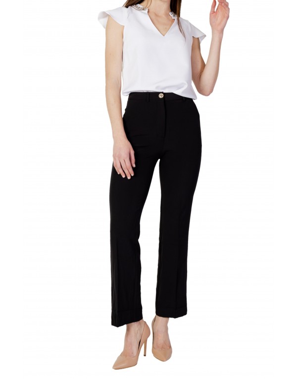 Brand: Guess Gender: Women Type: Trousers Season: Spring/Summer PRODUCT DETAIL • Color: black • Pattern: plain • Fastening: zip and button COMPOSITION AND MATERIAL • Composition: -12% lycra -88% polyester • Washing: machine wash at 30°