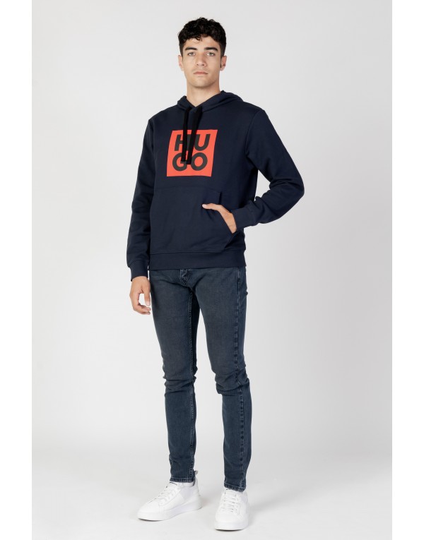 Brand: Hugo Gender: Men Type: Sweatshirts Season: Fall/Winter PRODUCT DETAIL • Color: blue • Pattern: print • Sleeves: long • Collar: hood • Pockets: front pockets COMPOSITION AND MATERIAL • Composition: -100% cotton • Washing: machine wash at 30°