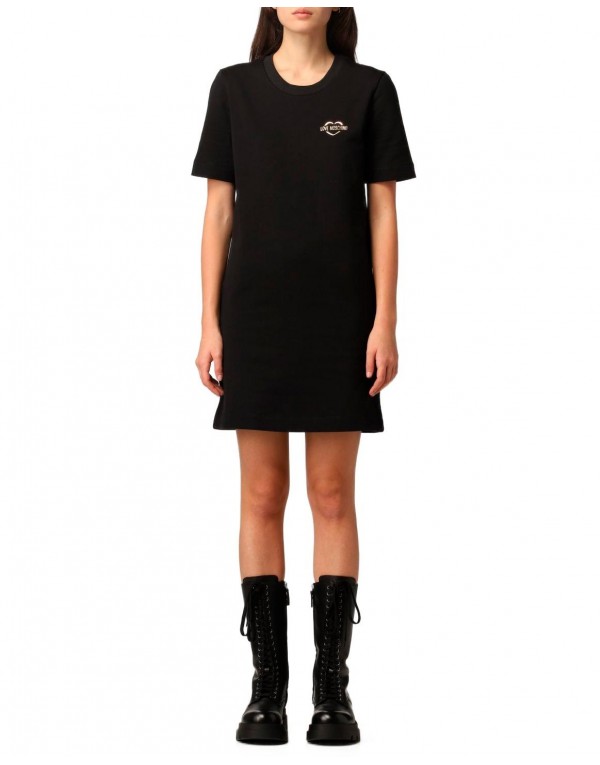 Brand: Love Moschino Gender: Women Type: Dresses Season: Fall/Winter PRODUCT DETAIL • Color: black • Pattern: plain • Fastening: slip on • Sleeves: short • Neckline: round neck COMPOSITION AND MATERIAL • Composition: -95% cotton -5% lycra • Washing: machine wash at 30°