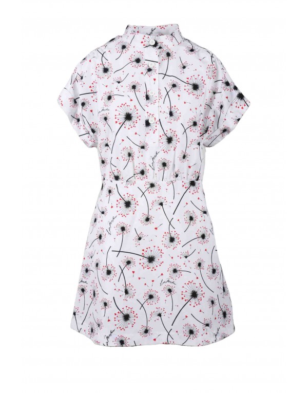 Brand: Love Moschino Gender: Women Type: Dresses Season: Spring/Summer PRODUCT DETAIL • Color: white • Pattern: print • Fastening: buttons • Sleeves: short • Collar: mandarin COMPOSITION AND MATERIAL • Composition: -65% cotton -35% polyamide • Washing: machine wash at 30°
