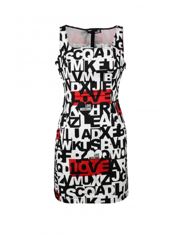 Brand: Love Moschino Gender: Women Type: Dresses Season: Spring/Summer PRODUCT DETAIL • Color: white • Pattern: print • Sleeves: sleeveless • Neckline: square neckline • Details: -short COMPOSITION AND MATERIAL • Composition: -97% cotton -3% elastane • Washing: machine wash at 30°