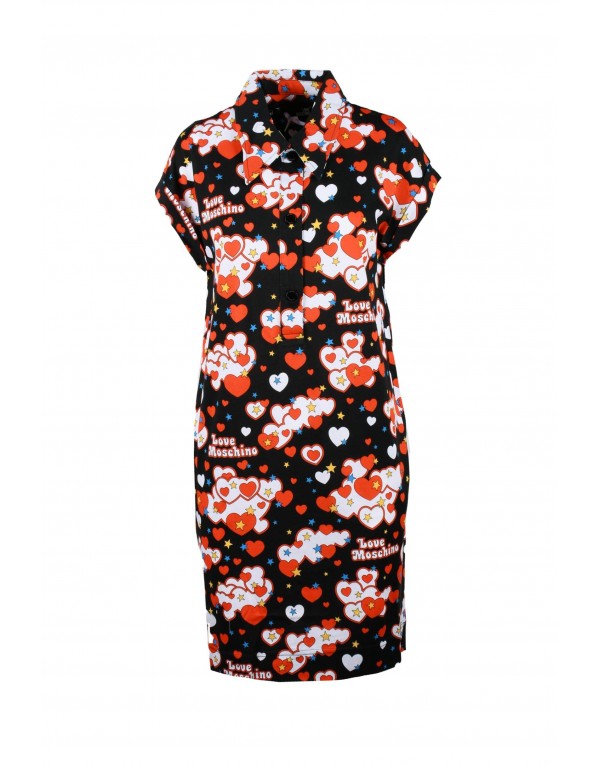 Brand: Love Moschino Gender: Women Type: Dresses Season: Spring/Summer PRODUCT DETAIL • Color: black • Pattern: print • Fastening: buttons • Sleeves: short • Collar: classic COMPOSITION AND MATERIAL • Composition: -100% cotton • Washing: machine wash at 30°