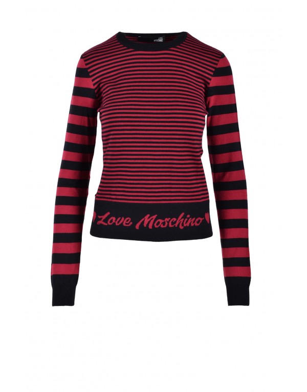 Brand: Love Moschino Gender: Women Type: Knitwear Season: Fall/Winter PRODUCT DETAIL • Color: black • Sleeves: long • Neckline: round neck COMPOSITION AND MATERIAL • Composition: -31% acetate -20% wool -38% nylon -11% polyester