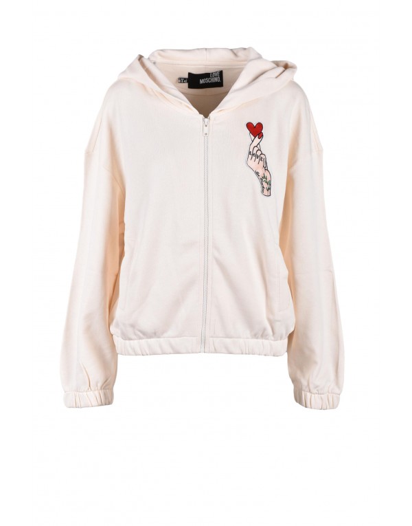 Brand: Love Moschino Gender: Women Type: Sweatshirts Season: Fall/Winter PRODUCT DETAIL • Color: white • Pattern: print • Fastening: with zip • Sleeves: long • Collar: hood COMPOSITION AND MATERIAL • Composition: -100% cotton • Washing: machine wash at 30°