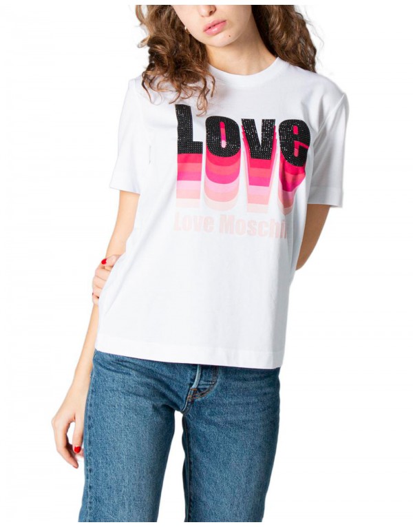 Brand: Love Moschino Gender: Women Type: T-shirts Season: Spring/Summer PRODUCT DETAIL • Color: white • Pattern: print • Sleeves: short • Neckline: round neck COMPOSITION AND MATERIAL • Composition: -100% cotton • Washing: machine wash at 30°