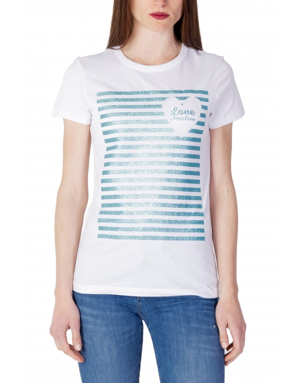 Brand: Love Moschino Gender: Women Type: T-shirts Season: Spring/Summer PRODUCT DETAIL • Color: white • Pattern: print • Fastening: slip on • Sleeves: short • Neckline: round neck COMPOSITION AND MATERIAL • Composition: -100% cotton • Washing: machine wash at 30°