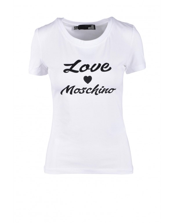 Brand: Love Moschino Gender: Women Type: T-shirts Season: Fall/Winter PRODUCT DETAIL • Color: white • Pattern: print • Fastening: slip on • Sleeves: short • Neckline: round neck COMPOSITION AND MATERIAL • Composition: -95% cotton -5% spandex • Washing: machine wash at 30°