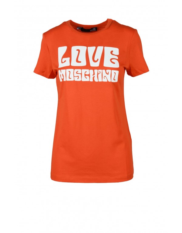 Brand: Love Moschino Gender: Women Type: T-shirts Season: Spring/Summer PRODUCT DETAIL • Color: orange • Pattern: print • Sleeves: short • Neckline: round neck COMPOSITION AND MATERIAL • Composition: -100% cotton • Washing: machine wash at 30°