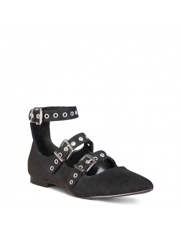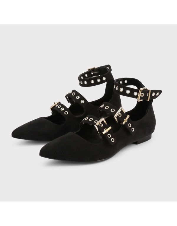 - Women's flat shoes, buckles, adjustable ankle strap