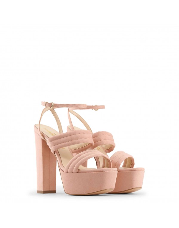 A super desirable silhouette is created by the wraparound straps: Luxurious velvet sandals with a solid heel perfect to make them wearable all day long, ideal matched with mini skirts and culottes pants.