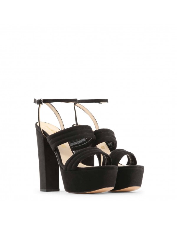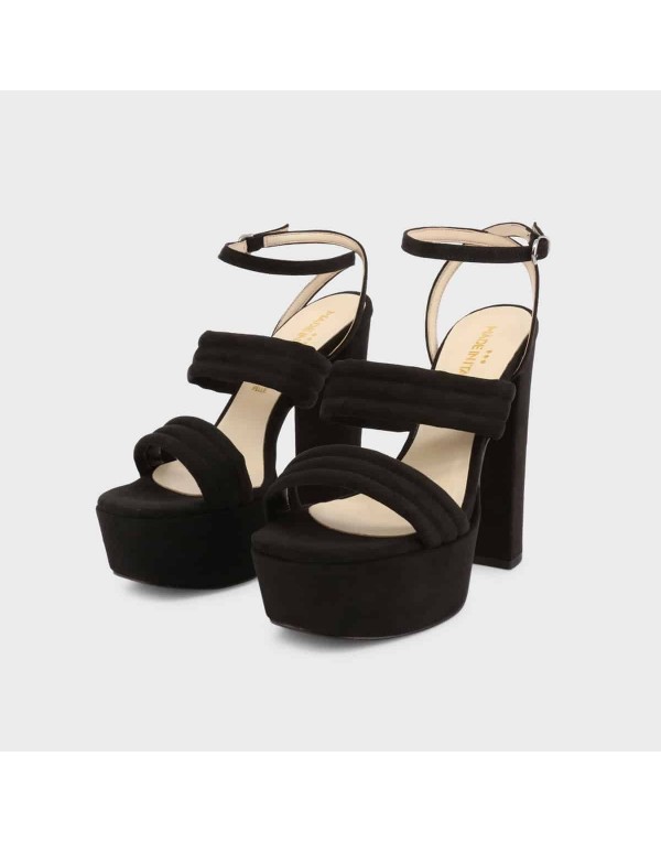 A super desirable silhouette is created by the wraparound straps: Luxurious velvet sandals with a solid heel perfect to make them wearable all day long, ideal matched with mini skirts and culottes pants.