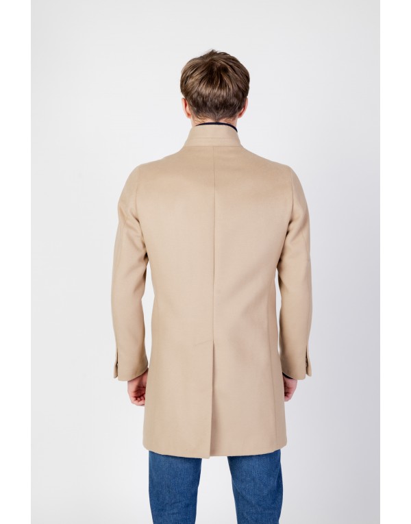 Brand: Mulish Gender: Men Type: Coats Season: Fall/Winter PRODUCT DETAIL • Color: beige • Fastening: buttons • Sleeves: long • Neckline: v-neck • Collar: lapel collar COMPOSITION AND MATERIAL • Composition: -1% lycra -94% polyester -5% viscose • Washing: dry cleaned