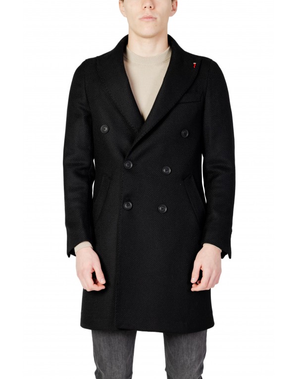 Brand: Mulish Gender: Men Type: Coats Season: Fall/Winter PRODUCT DETAIL • Color: black • Fastening: buttons • Sleeves: long • Neckline: v-neck • Collar: lapel collar • Pockets: side pockets COMPOSITION AND MATERIAL • Composition: -40% wool -60% polyester • Washing: dry cleaned