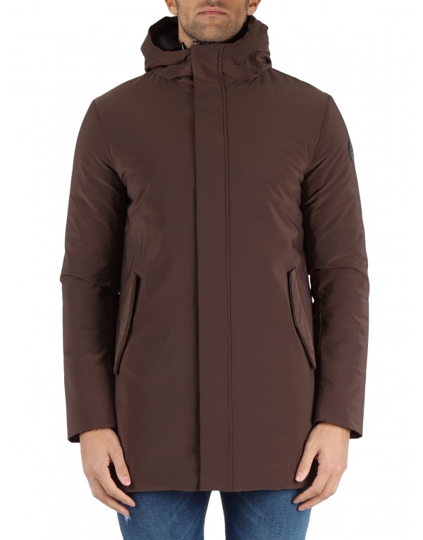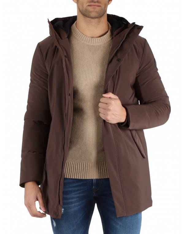 non detachable hood with drawstring