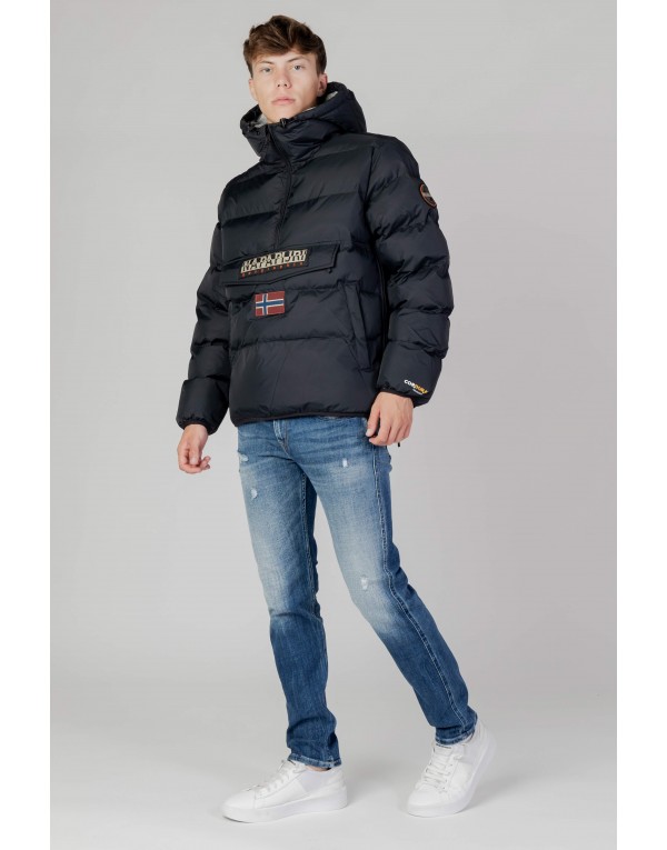 Brand: Napapijri Gender: Men Type: Jackets Season: Fall/Winter PRODUCT DETAIL • Color: black • Fastening: with zip • Sleeves: long • Collar: hood • Pockets: front pockets COMPOSITION AND MATERIAL • Composition: -100% polyester • Washing: machine wash at 30°