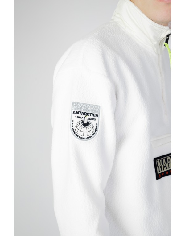 Brand: Napapijri Gender: Men Type: Jackets Season: Fall/Winter PRODUCT DETAIL • Color: white • Pattern: plain • Fastening: with zip • Sleeves: long • Neckline: turtleneck COMPOSITION AND MATERIAL • Composition: -100% polyester • Washing: machine wash at 30°