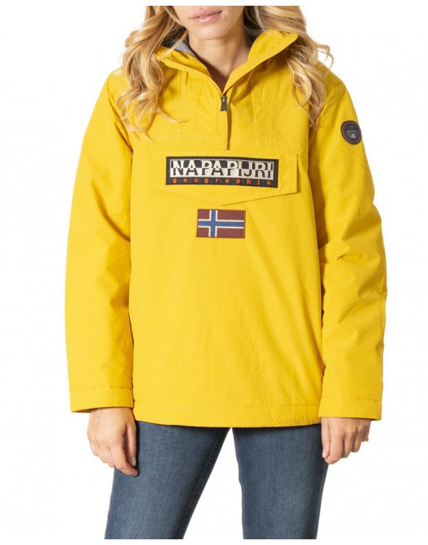 Brand: Napapijri Gender: Women Type: Jackets Season: Fall/Winter PRODUCT DETAIL • Color: yellow • Pattern: print • Fastening: with zip • Sleeves: long • Collar: hood COMPOSITION AND MATERIAL • Composition: -100% polyester • Washing: machine wash at 30°