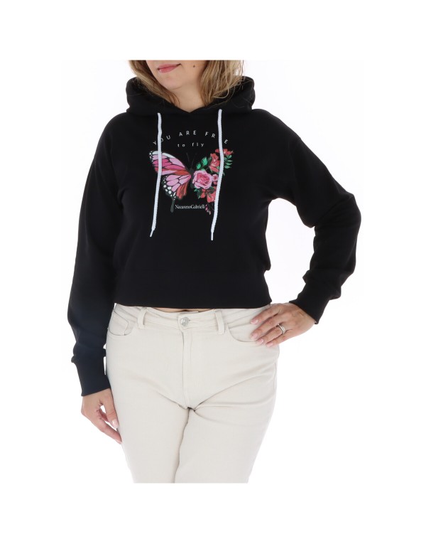 Brand: Nazareno Gabrielli Gender: Women Type: Sweatshirts Season: All seasons PRODUCT DETAIL • Color: black • Pattern: print • Sleeves: long • Collar: hood • Article code: NGD23FC10 COMPOSITION AND MATERIAL • Composition: -95% cotton -5% elastane • Washing: machine wash at 30°