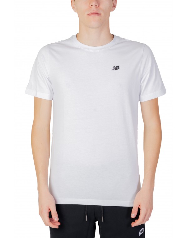 Brand: New Balance Gender: Men Type: T-shirts Season: Fall/Winter PRODUCT DETAIL • Color: white • Pattern: plain • Fastening: slip on • Sleeves: short • Neckline: round neck COMPOSITION AND MATERIAL • Composition: -100% cotton • Washing: machine wash at 30°