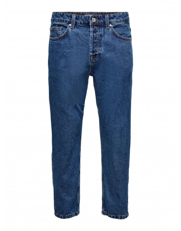 Brand: Only & Sons Gender: Men Type: Jeans Season: Spring/Summer PRODUCT DETAIL • Color: blue • Pattern: plain • Fastening: zip and button • Pockets: front and back pockets COMPOSITION AND MATERIAL • Composition: -100% cotton • Washing: machine wash at 30°