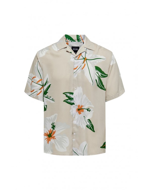Brand: Only & Sons Gender: Men Type: Shirts Season: Spring/Summer PRODUCT DETAIL • Color: beige • Pattern: floral • Fastening: buttons • Sleeves: short • Collar: classic COMPOSITION AND MATERIAL • Composition: -50% other fibres -50% viscose