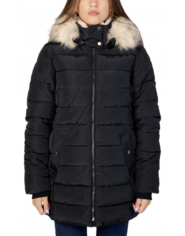 Brand: Only Gender: Women Type: Jackets Season: Fall/Winter PRODUCT DETAIL • Color: black • Pattern: plain • Fastening: with zip • Sleeves: long • Collar: hood • Pockets: front pockets COMPOSITION AND MATERIAL • Composition: -100% polyester • Washing: machine wash at 30°