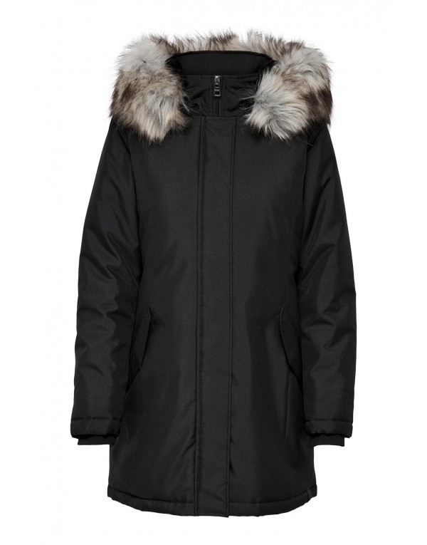 Brand: Only Gender: Women Type: Jackets Season: Fall/Winter PRODUCT DETAIL • Color: black • Fastening: zip and automatic buttons • Sleeves: long • Collar: hood COMPOSITION AND MATERIAL • Composition: -100% polyester • Washing: dry cleaned
