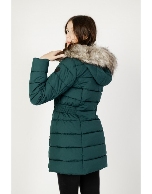 Brand: Only Gender: Women Type: Jackets Season: Fall/Winter PRODUCT DETAIL • Color: green • Pattern: plain • Fastening: zip and hook button • Sleeves: long • Neckline: turtleneck • Collar: hood • Pockets: front pockets COMPOSITION AND MATERIAL • Composition: -100% polyester • Washing: machine wash at 30°