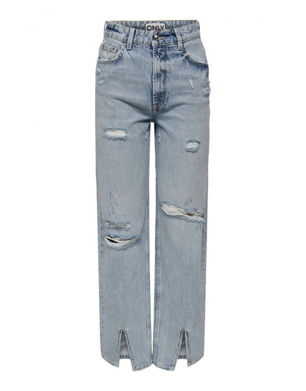 Brand: Only Gender: Women Type: Jeans Season: Spring/Summer PRODUCT DETAIL • Color: blue • Fastening: zip and button • Pockets: front and back pockets • Details: -worn out effect COMPOSITION AND MATERIAL • Composition: -100% cotton • Washing: machine wash at 30°