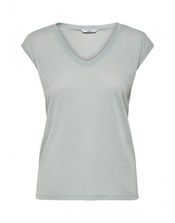Brand: Only Gender: Women Type: T-shirts Season: Spring/Summer PRODUCT DETAIL • Color: blue • Pattern: plain • Sleeves: short • Neckline: v-neck COMPOSITION AND MATERIAL • Composition: -33% other fibres -45% polyester -22% viscose • Washing: machine wash at 30°