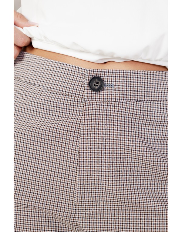 Brand: Only Gender: Women Type: Trousers Season: Fall/Winter PRODUCT DETAIL • Color: beige • Pattern: checked • Fastening: zip and button • Pockets: front and back pockets COMPOSITION AND MATERIAL • Composition: -2% lycra -65% polyester -33% viscose • Washing: machine wash at 30°