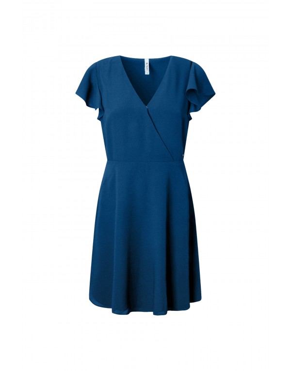 Brand: Pepe Jeans Gender: Women Type: Dresses Season: Spring/Summer PRODUCT DETAIL • Color: blue • Pattern: plain • Sleeves: short • Neckline: v-neck COMPOSITION AND MATERIAL • Composition: -3% elastane -97% polyester • Washing: machine wash at 30°