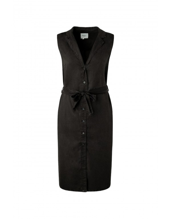 Brand: Pepe Jeans Gender: Women Type: Dresses Season: Spring/Summer PRODUCT DETAIL • Color: black • Pattern: plain • Fastening: buttons • Sleeves: sleeveless • Collar: classic COMPOSITION AND MATERIAL • Composition: -100% lyocell • Washing: machine wash at 30°