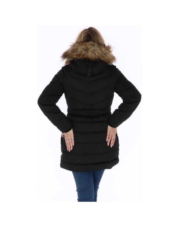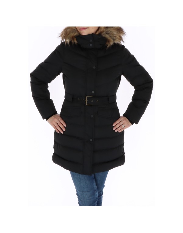 Brand: Pepe Jeans Gender: Women Type: Jackets Season: Fall/Winter PRODUCT DETAIL • Color: black • Fastening: zip and automatic buttons • Collar: hood • Pockets: front pockets • Details: -with belt COMPOSITION AND MATERIAL • Composition: -100% polyester